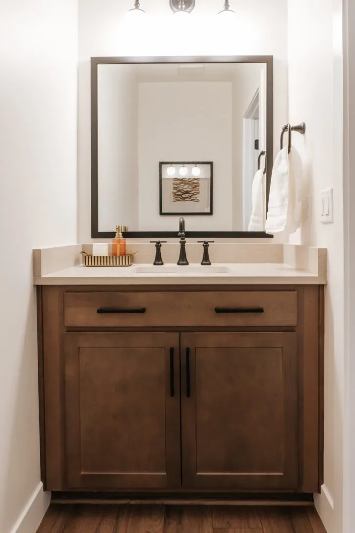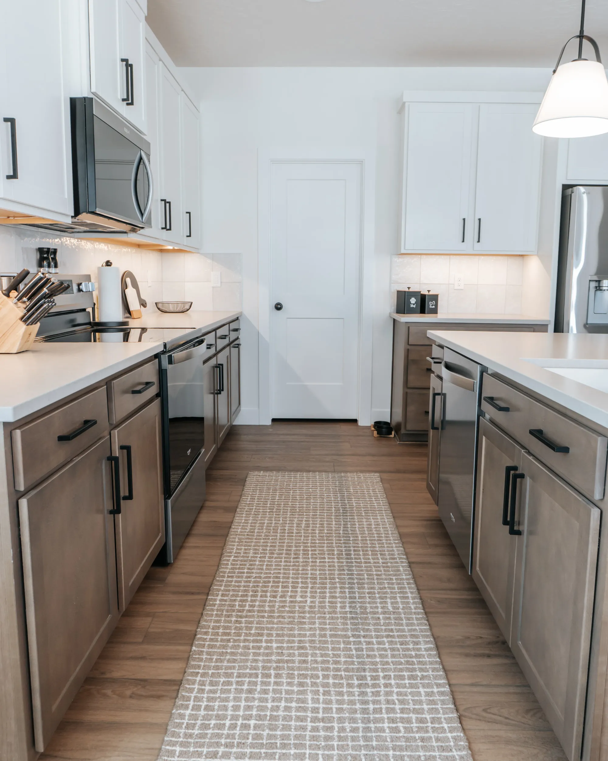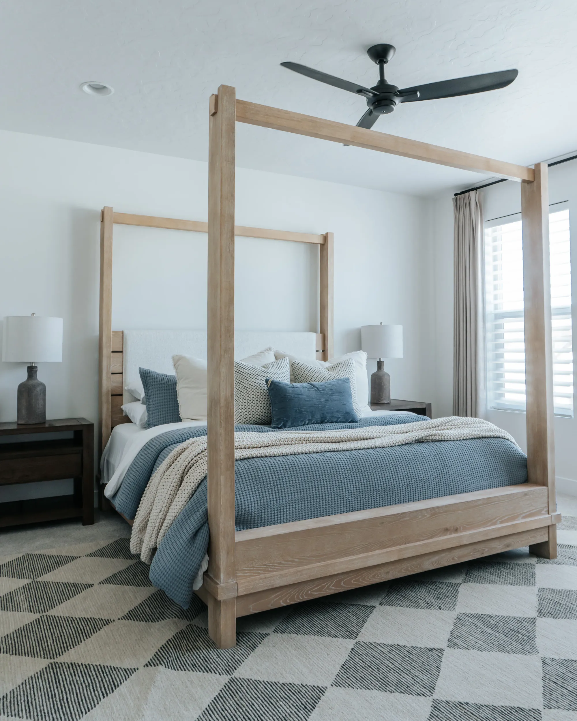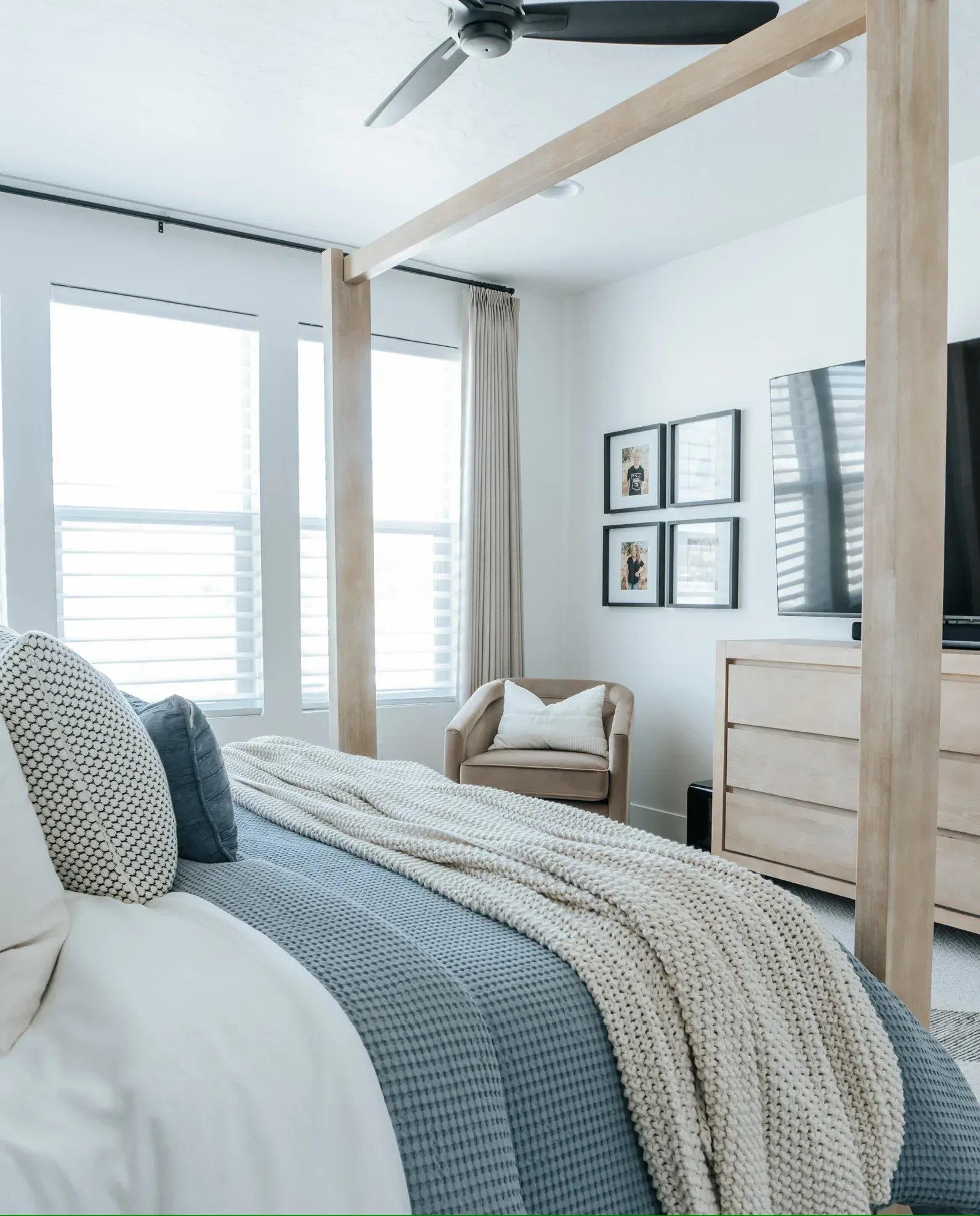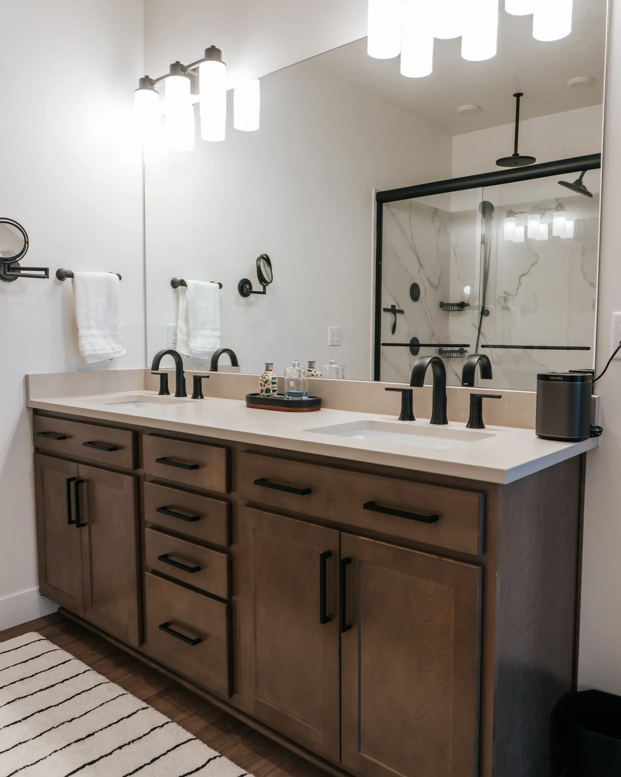 At our West Meadows project we were tasked with the goal to make a cozy yet modern bachelor pad. The neutral color palette — grays, whites, and stone — makes it look modern and easy to style.